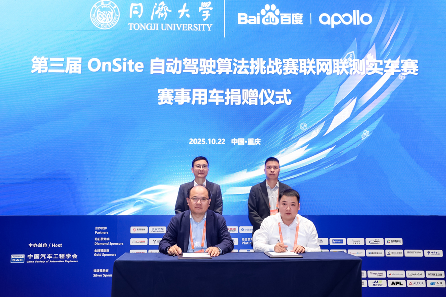 “OnSite自动驾驶算法挑战赛自举办以来,始终以‘开放、公平、共享’为宗旨,致力于打造我国自动驾驶技术测试与验证的公共服务平台。今年的实车赛,将在同济大学嘉定校区智能网联测试场和交通部公路院通州测试场同步举行,汇聚全国高校、科研院所团队,共同探索自动驾驶技术的安全验证、算法评测和场景构建新路径。”同济大学汽车学院院长熊璐在捐赠仪式上表示,百度此次向同济大学捐赠10辆自动驾驶测试车辆,为OnSite实车赛提供了宝贵的测试装备保障。这一举措不仅体现了百度在智能驾驶领域的技术担当与社会责任,也将为高校科研团队提供更完善的实验条件,促进产学研的深度协同与创新实践。